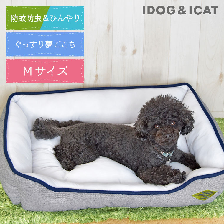 【 犬 猫 ベッド 】IDOG&ICAT ひんやり防虫 スクエアベッド Mサイズ moscape COOL【 あす楽 翌日配送 】【 ひんやり 接触冷感 防虫 防蚊 クッション カドラー ペットベット ペットソファ 犬のベッド 猫のベッド ドッグハウス 春用 夏用 icat 】