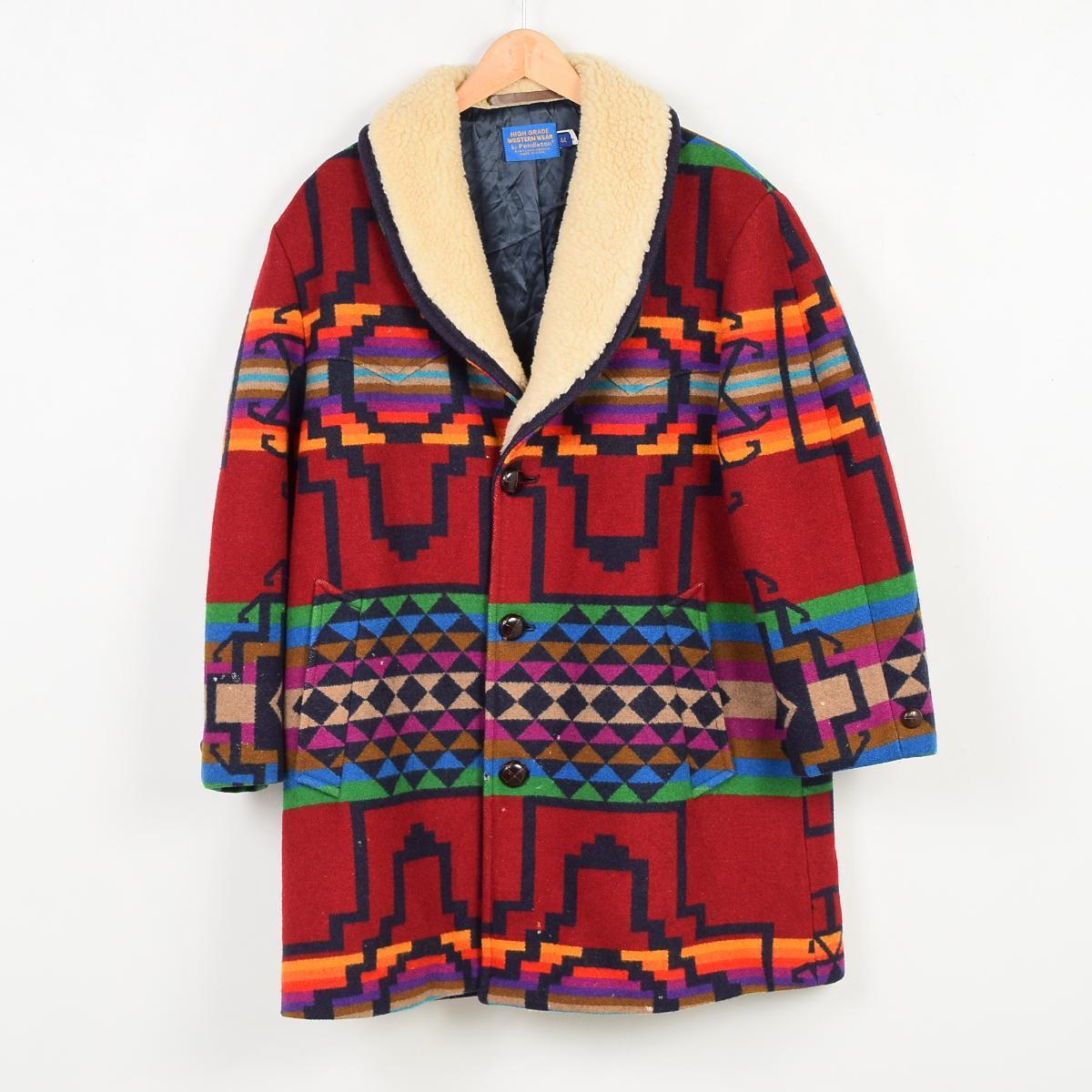 LAUREN ラルフローレン ネイティブ柄 パッチワーク ショールカラー ウール ハンドニット ガウン M【レディース】【メンズ】【オールド】【カーディガン】【インディアン】【民族】【スペシャル】【アメリカ】【古着】【中古】