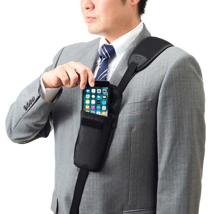 ショルダーベルト装着時は、縦でも横でもタブレットをご使用いただけます。
